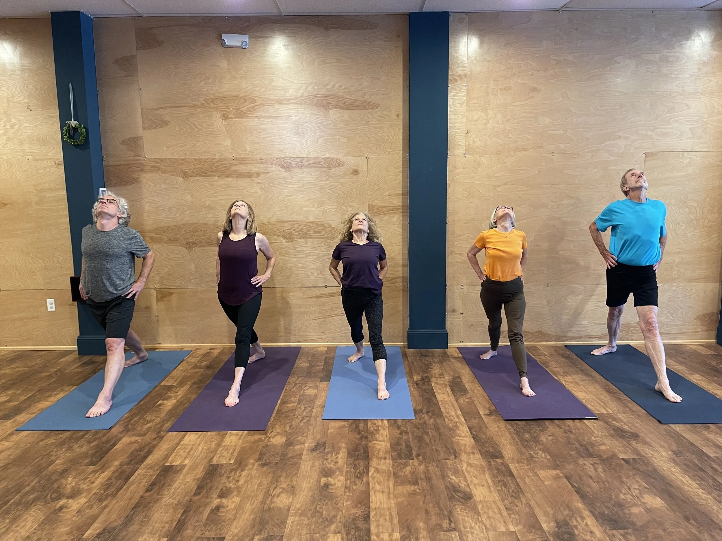 Standing poses are where any yoga practice begins. They move us outward from our core to the periphery, and being upright allows us to have a clear sense of ourselves and the space around us. The external reference points are clear and familiar, as we spend so much of our lives upright, while our eyes are open. They are demanding. They build strength and stamina, and we very quickly receive their benefits, more so than other classes of postures. While they are the first poses you will learn, you will continue doing them at all levels and in all classes at Sweetbay Yoga. We laugh a lot and interact while doing them!